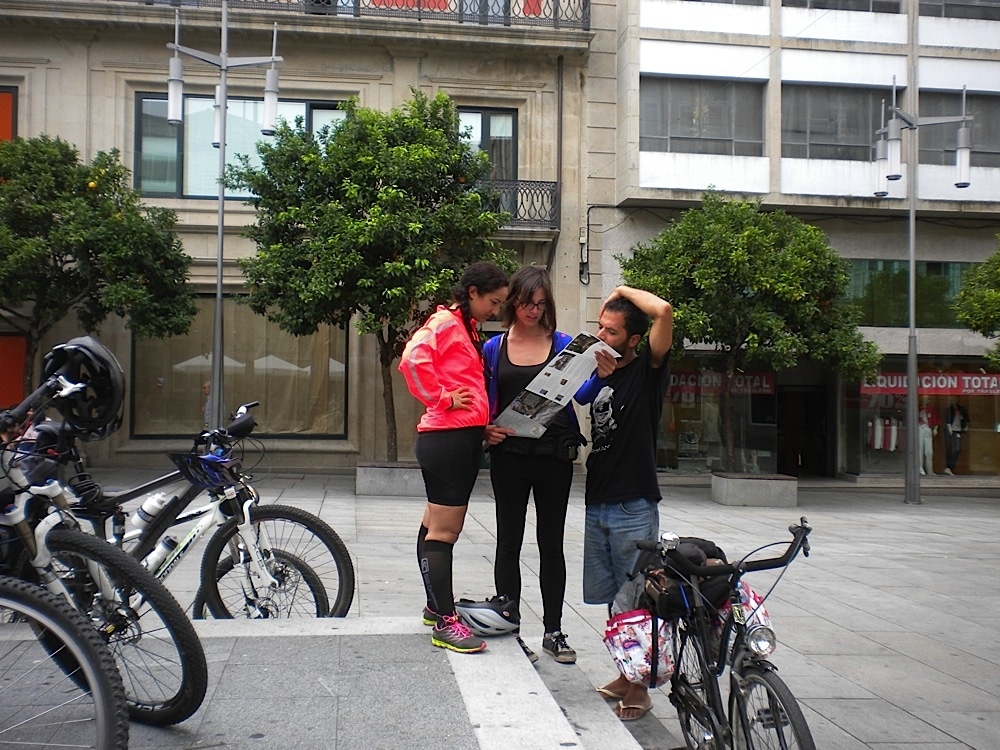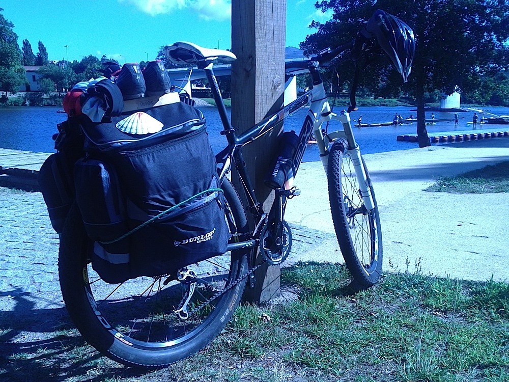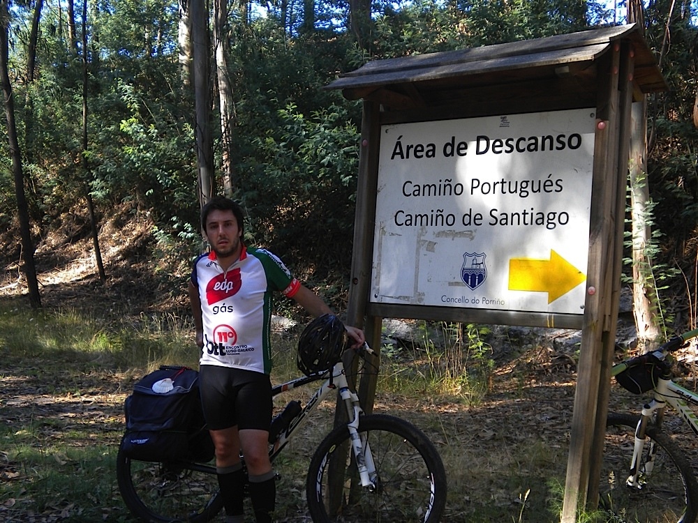 Em Pontevedra procuramos fastfood e fomos diretamente ao Burger King que fica bem na rota do caminho. Na esplanada do restaurante encontramos um simpático casal que fazia o caminho português pela costa até Finisterra em duas pasteleiras equipadas com uns alforges bastante caseiros. Corajosos!