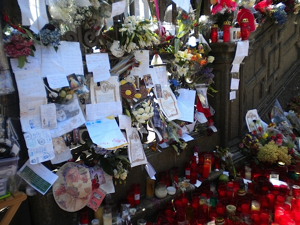 Uma semana após o trágico acidente ferroviário o cenário era desastroso junto à catedral. Um sem-número de pessoas fazia homenagem às vitimas, deixando flores e todo o tipo de objetos, incluindo muitas compostelas, o testemunho do peregrino que fez qualquer um dos caminhos até Santiago.