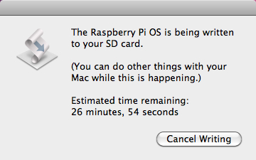 Em ambientes com OS X é possível efetuar a transferência através da linha de comandos no Terminal, no entanto, aconselhamos para os menos experientes, a colocação no cartão através de um utilitário para o efeito designado por Pi Filler.