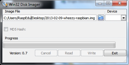 Colocar o sistema operativo no cartão SD através do Windows é uma tarefa muito simples. O mais conveniente é usar o utilitário Win32DiskImager, que permite através do seu interface escolher a imagem e enviá-la para o cartão SD.