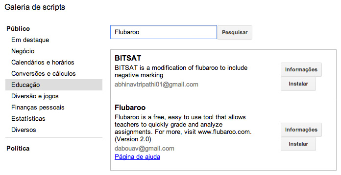 Neste artigo pretendo exemplificar a utilização do script Flubaroo nos formulários criados no Google Docs (atualmente designado por Google Drive).