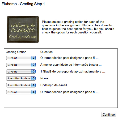 No processo de avaliação o Flubaroo poderá definir algumas itens importantes: